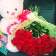 Свежий, хороший букет, розы 70 см как и написано, даже пахнут! Спасибо!